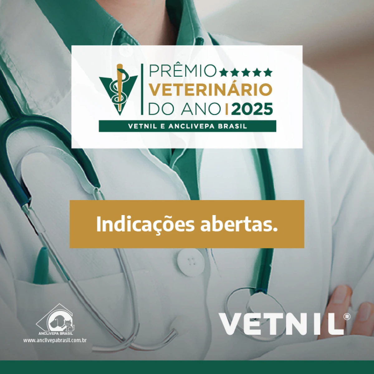 A Vetnil®, em parceria com a Anclivepa Brasil, anuncia a abertura das indicações para o Prêmio Veterinário do Ano Vetnil® Anclivepa Brasil 2025, que chega à sua 14ª edição. A iniciativa reconhece e homenageia os Médicos-Veterinários atuantes na clínica de pequenos animais que se destacaram ao longo do ano por sua dedicação, conhecimento, impacto para o fortalecimento da profissão e saúde animal.