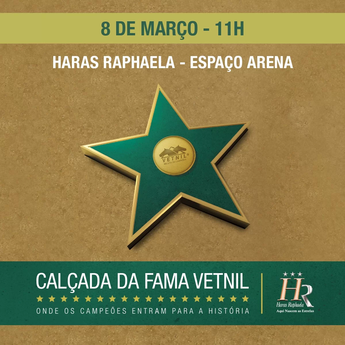 Pelo segundo ano consecutivo, a parceria de sucesso entre o Haras Raphaela, o maior e mais completo complexo para a realização de eventos equestres e sociais do país e a Vetnil, uma das líderes em saúde animal no Brasil, prossegue. Nesta quarta-feira, 8 de março, será eternizada na Calçada da Fama do Haras, em Tietê, interior de São Paulo, mais um grande nome do mundo quartista, na modalidade tambor e baliza.