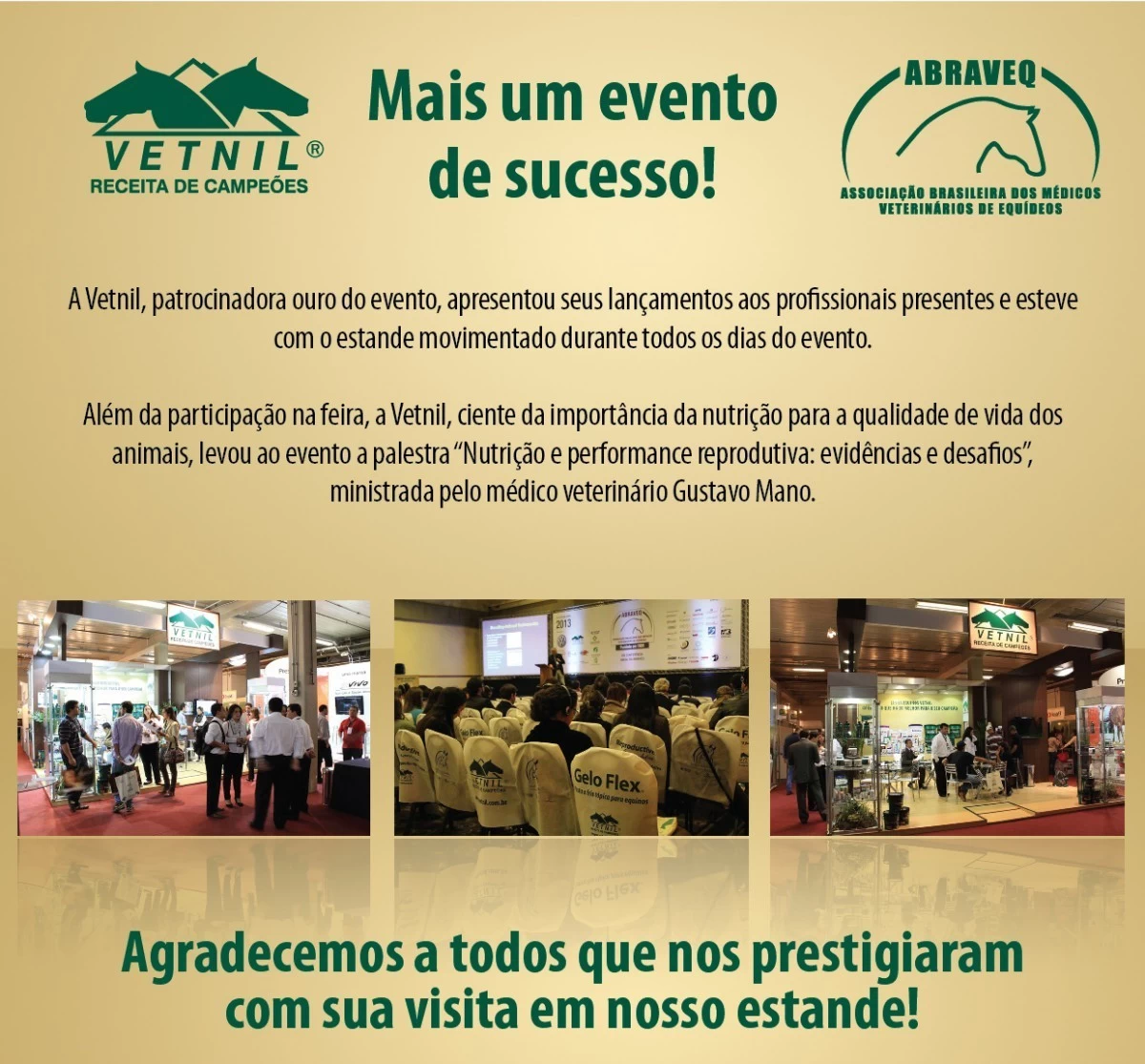 No dia 14 de julho, a equipe Vetnil participou da etapa classificatória do Freio de Ouro 2013, a mais importante prova da Associação Brasileira de Criadores de Cavalos…