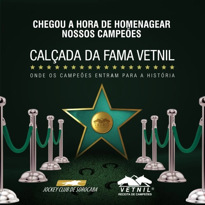 Chegou a hora de homenagear os grandes campeões! No dia 23 de fevereiro a Vetnil, em parceria com o Jockey Club de Sorocaba, terá o prazer de eternizar os melhores da…