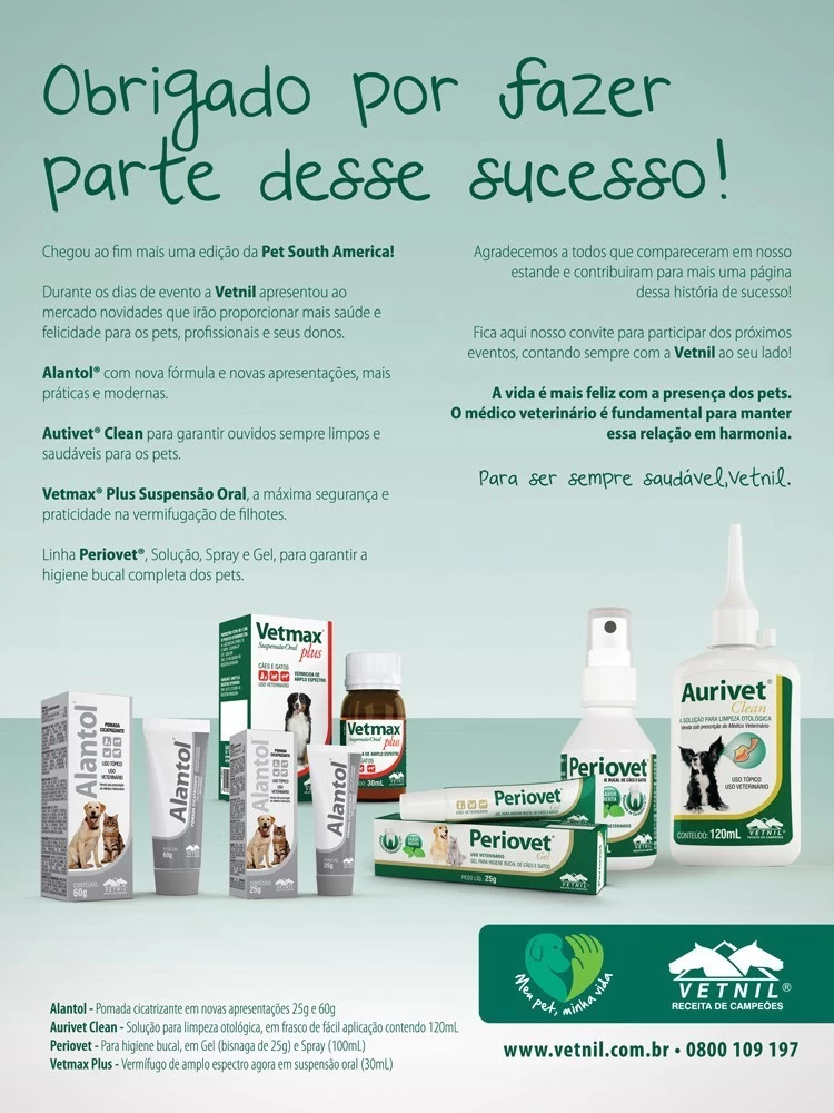 Entre os dias 29 e 31 de outubro a Vetnil participará da 12ª edição da Pet South America – Feira Internacional de Produtos e...