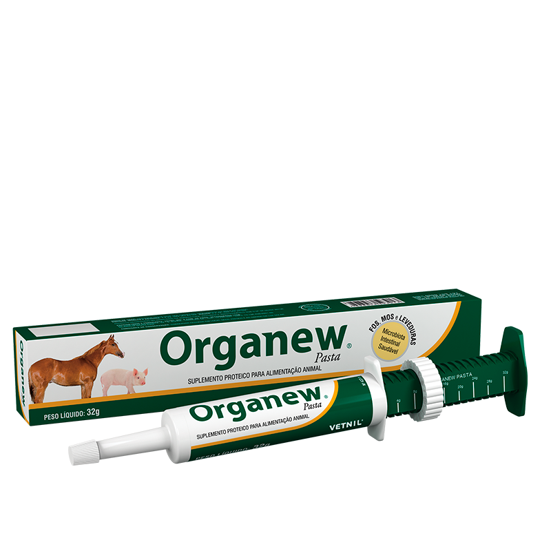 Organew® Pasta está compuesto por vitaminas, aminoácidos y elementos probióticos y prebióticos que ayudan en el desarrollo y mantenimiento de una microbiota intestinal sana, que proporciona una mejor digestibilidad de los nutrientes de la dieta y el aumento de la eficiencia alimentaria.