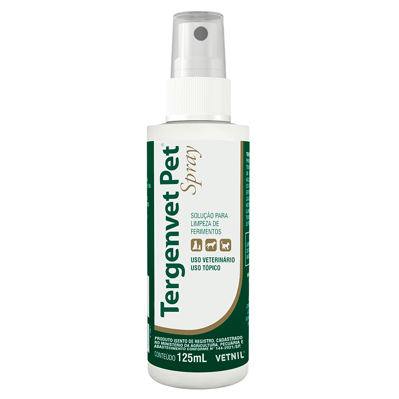 Tergenvet Pet® Spray promueve la higiene y limpieza de la piel intacta y lesionada. Debido a su capacidad tensioactiva, favorece la penetración de otros compuestos en los tejidos, auxiliando la higiene. El producto también puede ser utilizado en el canal auditivo para limpieza de rutina.