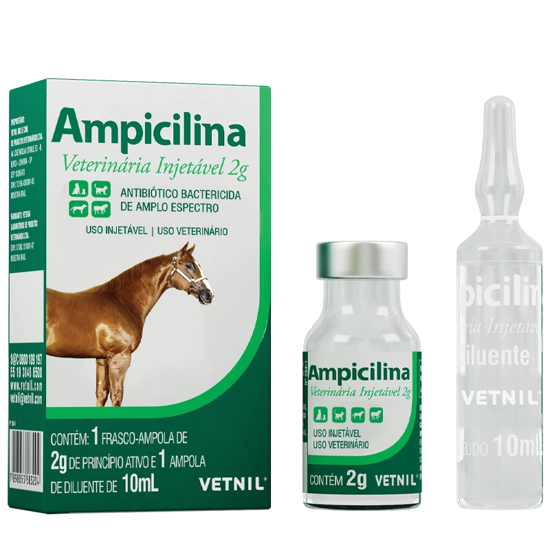 Ampicilina Veterinária Injetável 2 g é indicada para equinos no tratamento de infecções respiratórias, geniturinárias e gastrintestinais, além de outras localizadas ou sistêmicas causadas por Clostridium tetani, Pasteurella multocida, Rhodococcus equi, Streptococcus equi e Streptococcus zooepidemicus.