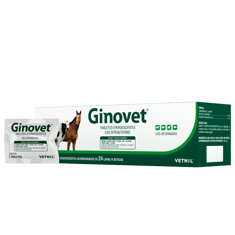 Ginovet® - tabletes efervescentes que tratam e/ou previnem a infecção uterina, ao mesmo tempo em que favorecem a expulsão da placenta. A ação antimicrobiana do cloridrato de tetraciclina é ampla, combatendo muitas bactérias aeróbias, gram-positivas e gram-negativas.