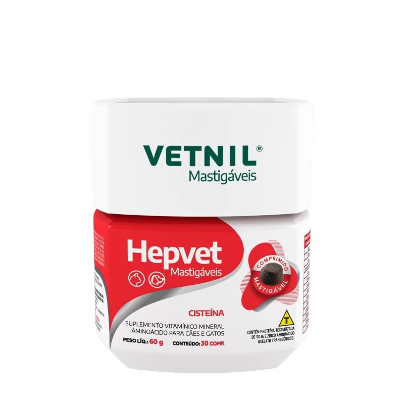 Os componentes presentes no Hepvet® Mastigáveis são fundamentais para o metabolismo de gorduras e proteínas, auxiliando na demanda de nutrientes e componentes específicos que cães e gatos possam ter. Contém nutrientes que agem sinergicamente, favorecendo os processos fisiológicos e a ação da Glutationa. A apresentação em comprimidos mastigáveis auxilia a aceitação pelo animal, tornando sua administração mais um momento de carinho entre o tutor e seu pet.