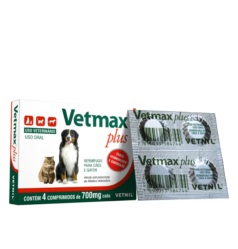 Vetmax® Plus é um vermífugo indicado para cães e gatos no tratamento das infecções por Ancylostoma spp., Toxocara spp., Trichuris spp., Dipylidium caninum e Giardia spp.